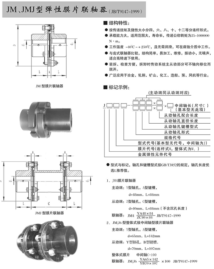 瑞安市寶德隆機械配件有限公司提供JM、JMJ型彈性膜片聯軸器具有拆裝方便,快速安裝等特點,廣泛用于連接/固定輪轂孔和零件的軸,例如齒輪,錐齒輪,鏈輪,葉輪,凸輪,皮帶輪和飛輪等軸的聯結固定,咨詢電話:18906872378