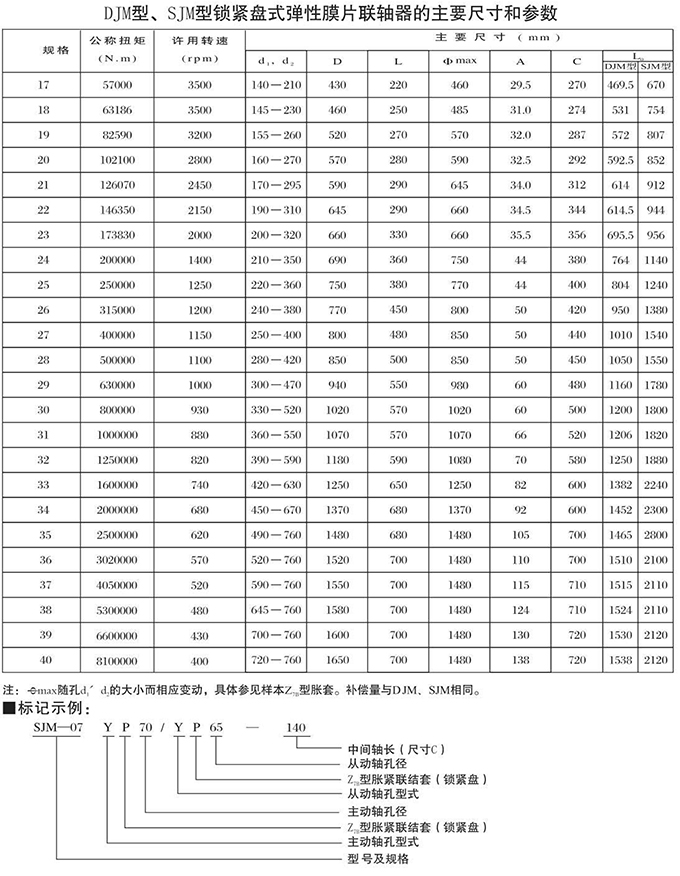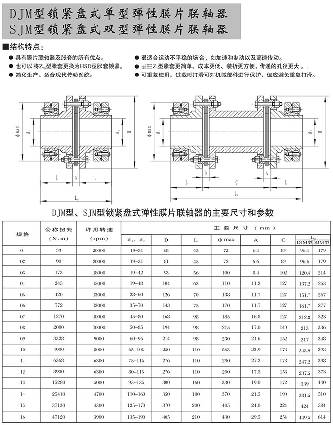 DJM型鎖緊盤式單型彈性膜片聯軸器SJM型鎖緊盤式雙型彈性膜片聯軸器