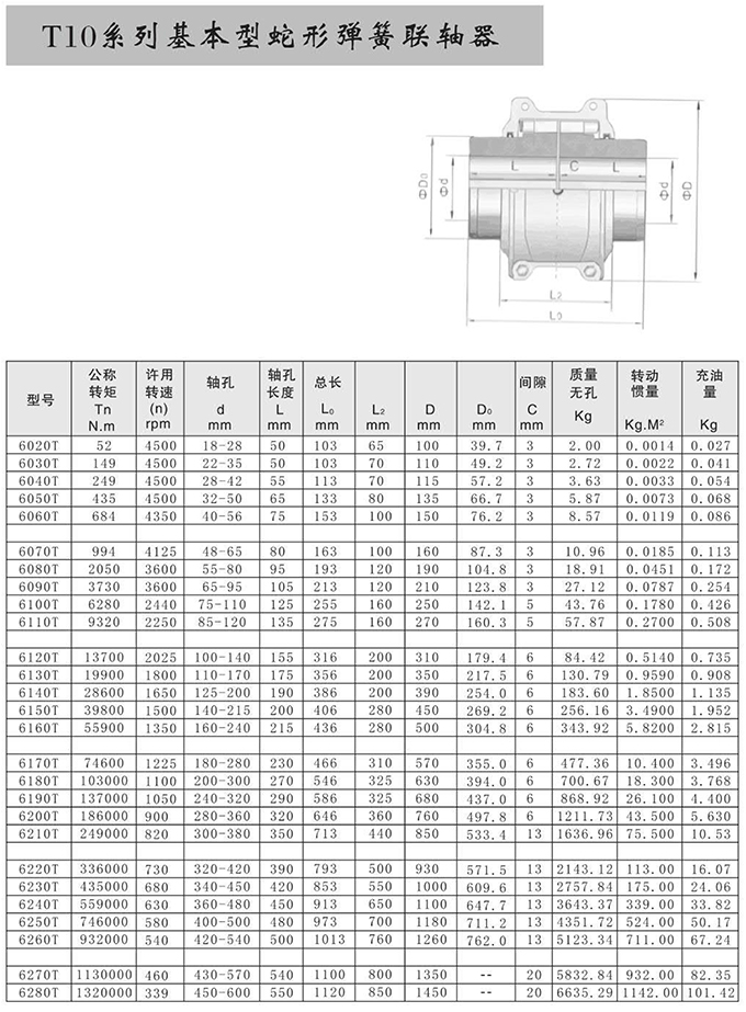 T10系列基本型蛇形彈簧聯軸器