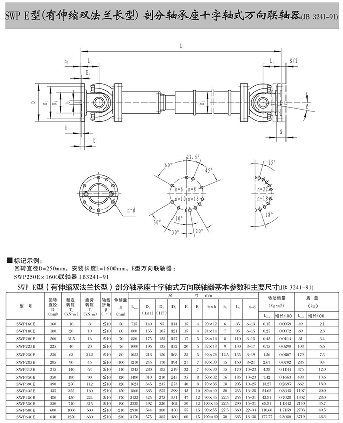 SWP E型(有伸縮雙法蘭長型)部分軸承座十字軸式萬向聯軸器