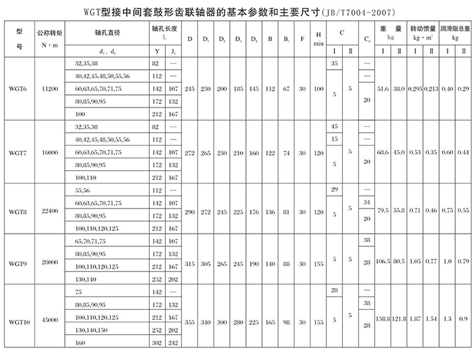 WGT型接中間套鼓形齒式聯軸器